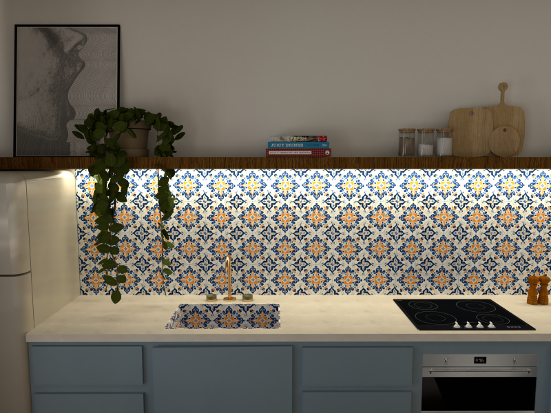 Inspirada en el Mediterráneo, presenta colores cálidos, formas redondeadas y tiene el area comun (salón, cocina y comedor) como el corzón del espacio, ya que para ella eso era extremadamente importante ya que le gusta mucho ofrecer cenas para amigos.